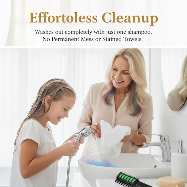The color washes out completely with one shampoo โ no stained towels, no regrets.