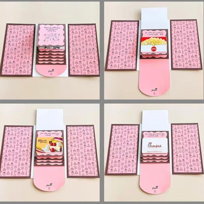 The pull-out design and festive graphics make opening it an experience full of surprise and delight.It builds excitement before they even see the gift cards inside!